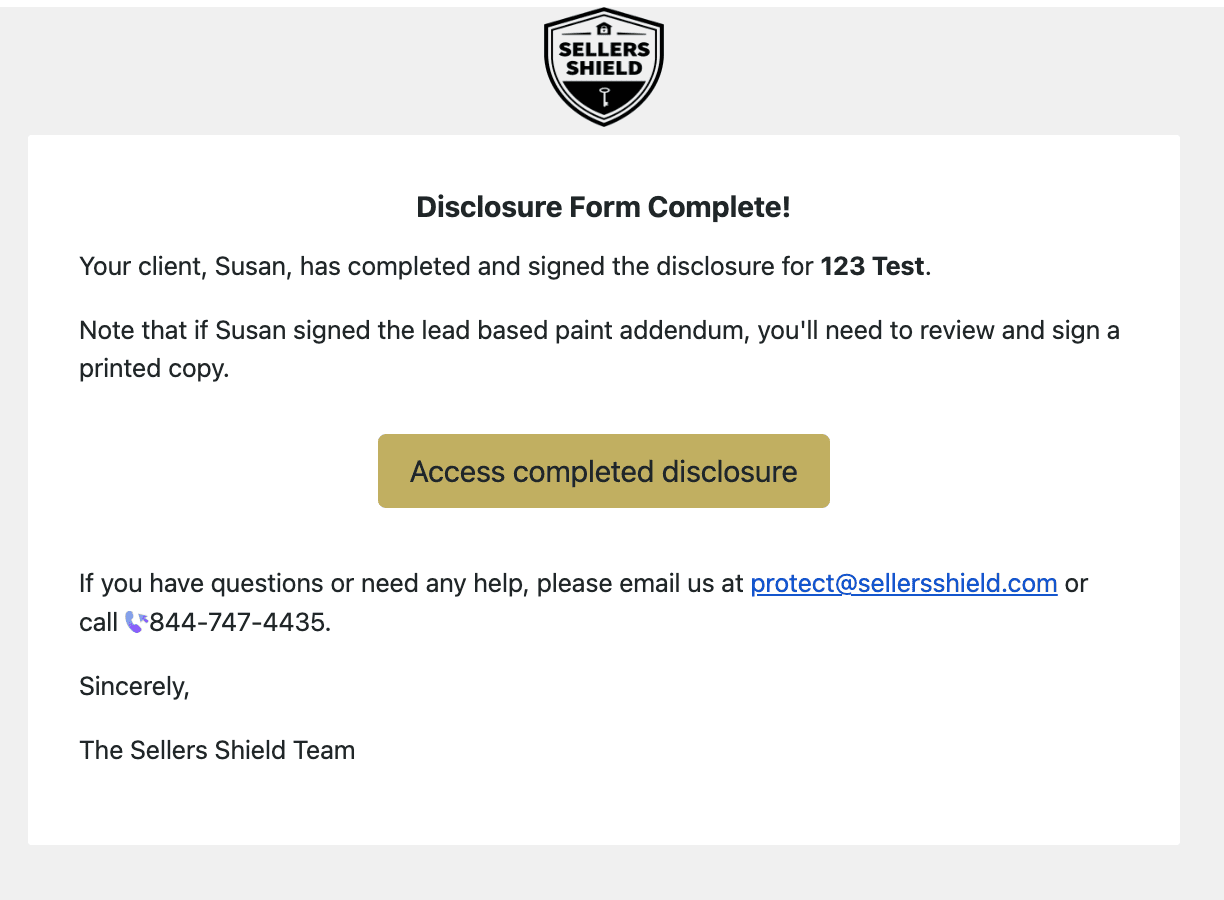 Once signed, the updated version will be emailed to the agent and seller, as well as available in both the seller and agent dashboards.