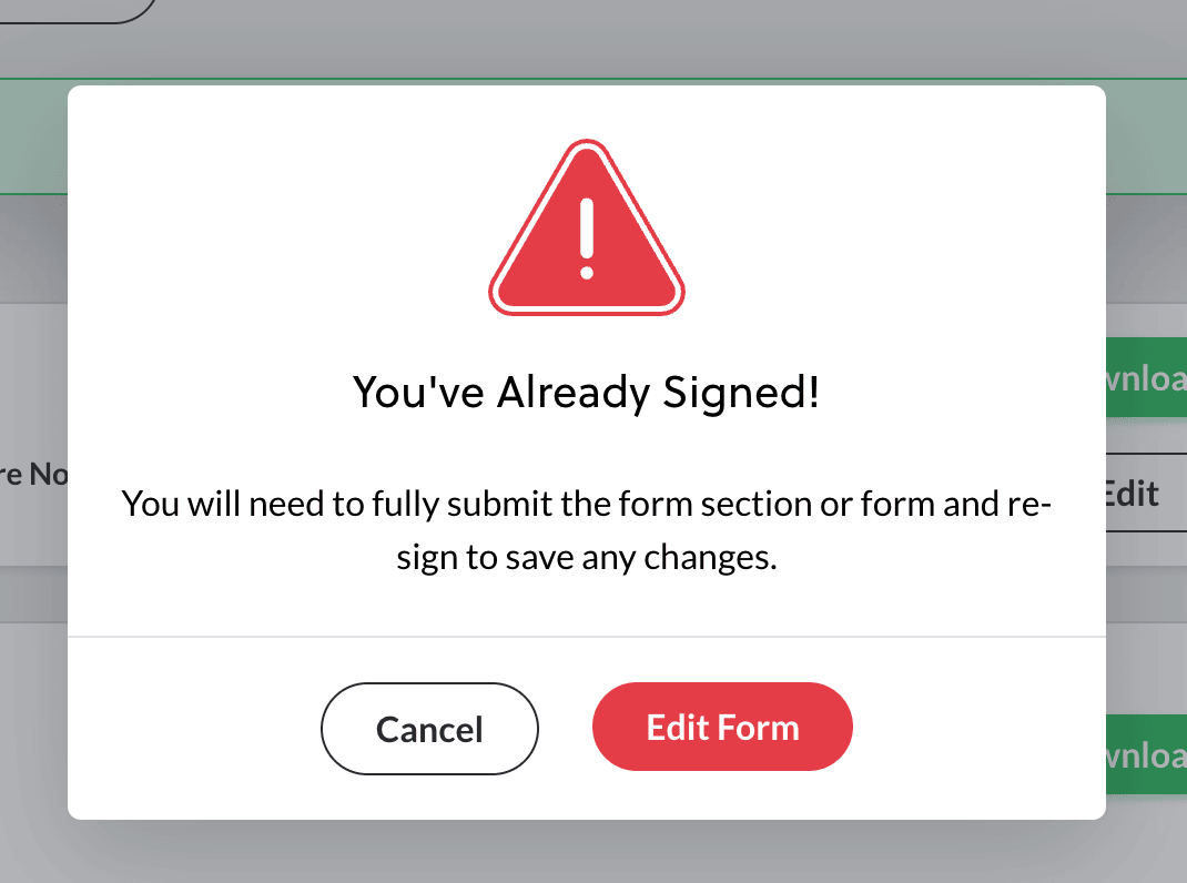 Sellers will need to confirm that they would like to clear their signatures and re-sign the disclosure forms once they have made their edits.